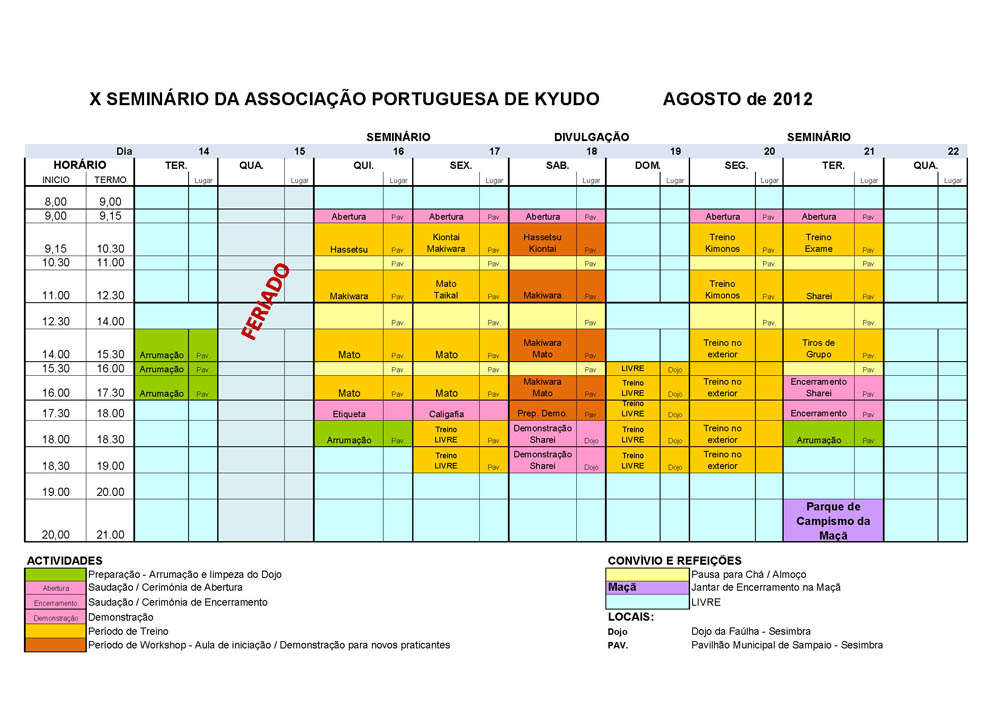 De 16 a 21 de Agosto realiza-se no Pavilhão Municipal de Sampaio em Sesimbra o 10º Seminário de Kyudo organizado pela Associação Portuguesa de Kyudo. Este treino intensivo conta com a presença e supervisão da Sensei Maki Kudo, Kyoshi 7º Dan, que se desloca a Portugal expressamente para o evento.